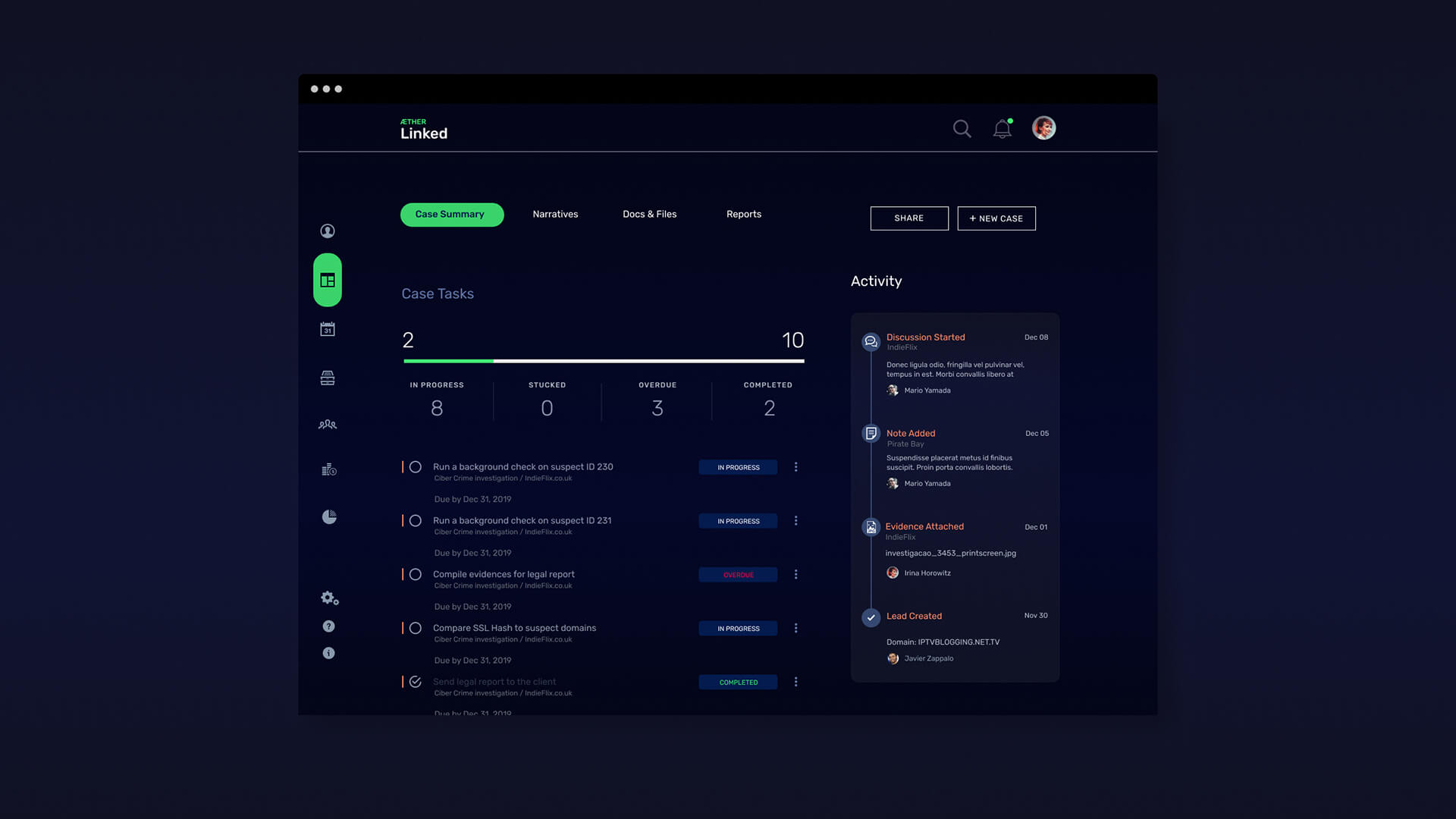 We created a new platform for Ether City to help cyber crime investigators plan and coordinate their work at one single space. Once again we were entrusted with all the Information Architecture, UX, UI design, and front-end development. We also developed all the key UI components.