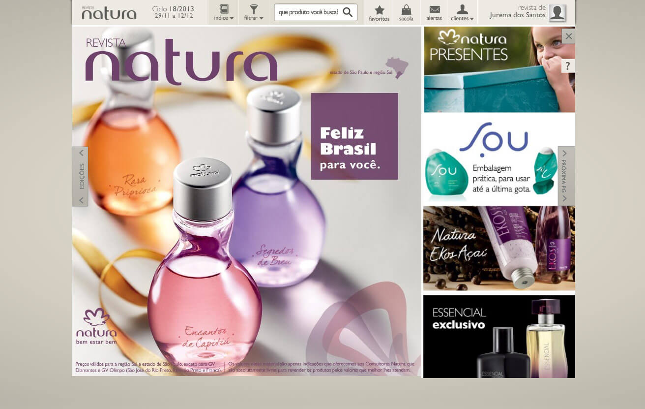 We’re responsible for the UX and UI Design and the back-end and front-end development of the catalog (Revista Natura) for all devices (smartphone, tablet, and desktop).